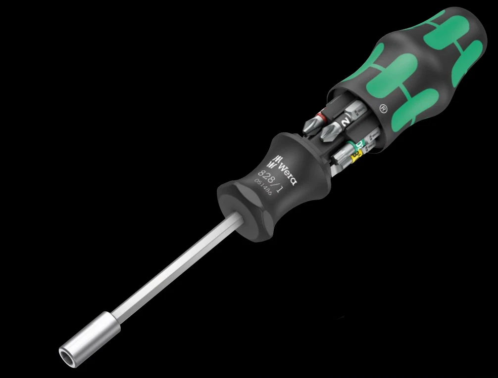 High-quality bitholding screwdriver with integrated bit magazine – perfect for professionals and DIY enthusiasts. The handle includes a strong permanent magnet to hold bits securely, while the convenient magazine provides quick access to six BiTorsion bits. Packaged in an advertising-free Christmas box, making it an ideal practical gift.